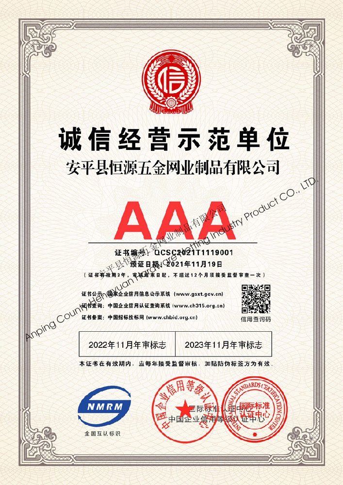 多年來(lái),安平縣恒源五金網(wǎng)業(yè)制品有限公司堅(jiān)持“科技興企、質(zhì)量立業(yè)”的經(jīng)營(yíng)理念和“誠(chéng)心為本、客戶(hù)至上”的合作宗旨,優(yōu)化生產(chǎn)工藝,打造優(yōu)質(zhì)產(chǎn)品,提供完善的服務(wù),受到國(guó)內(nèi)外客戶(hù)的一致好評(píng),產(chǎn)品行銷(xiāo)全國(guó)各地,并出口美國(guó)、德國(guó)、韓國(guó)、日本、臺(tái)灣等國(guó)家和地區(qū)。