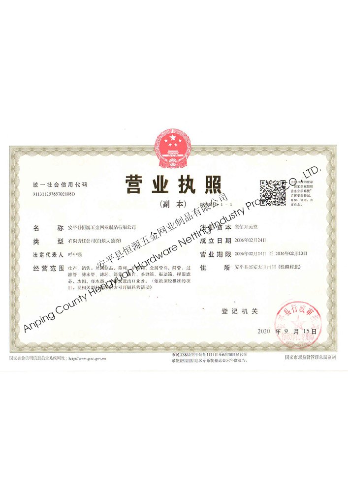 安平縣恒源五金網(wǎng)業(yè)制品有限公司 Anping County Hengyuan Hardware Netting Industry Product CO., LTD.